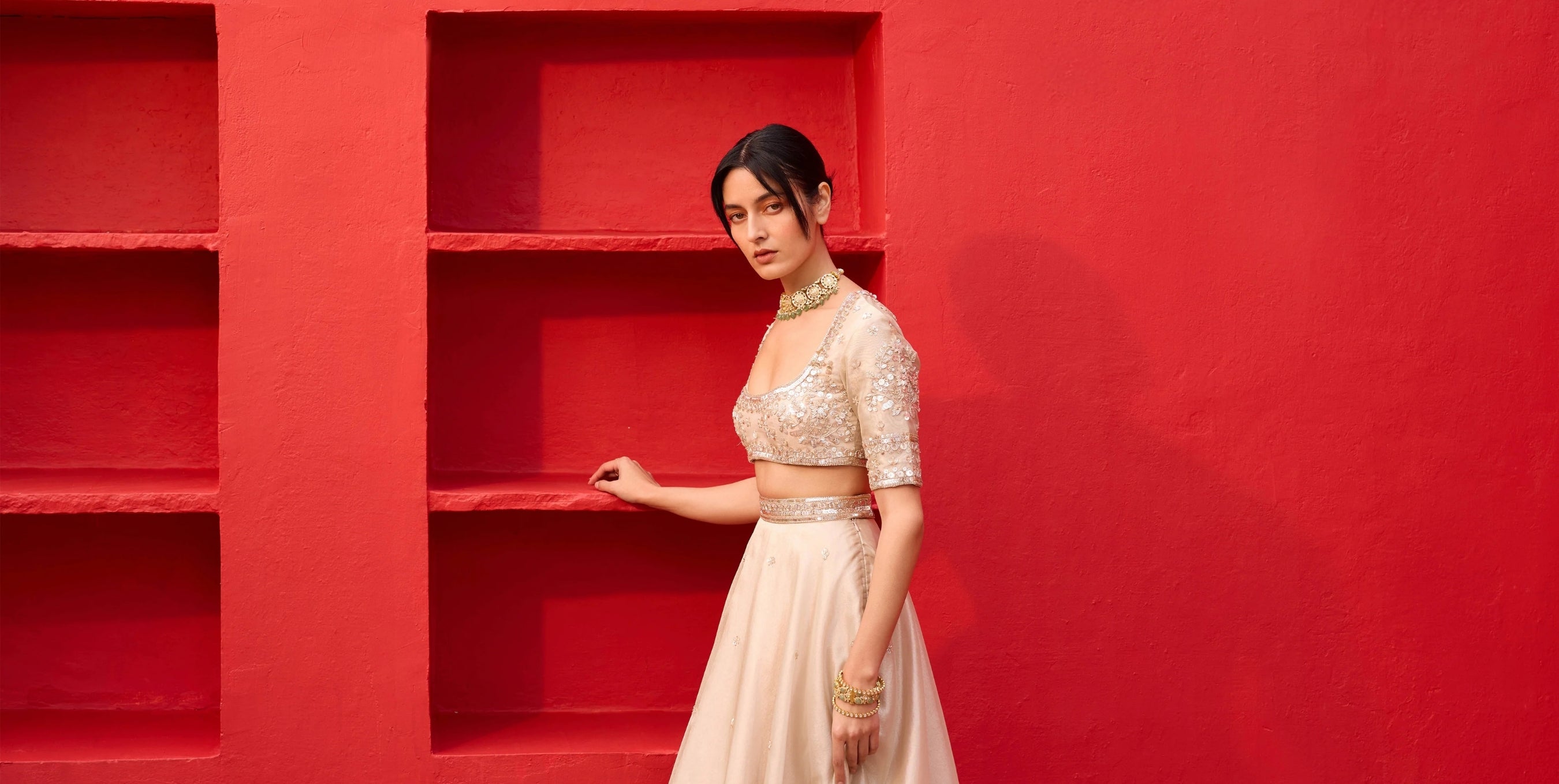 We work with a mix of contemporary, luxury, and boutique Indian designers who specialize in bridal wear, festive wear, occasion wear, and statement everyday pieces. Our designers are known for their originality, attention to detail, and authentic Indian craftsmanship.