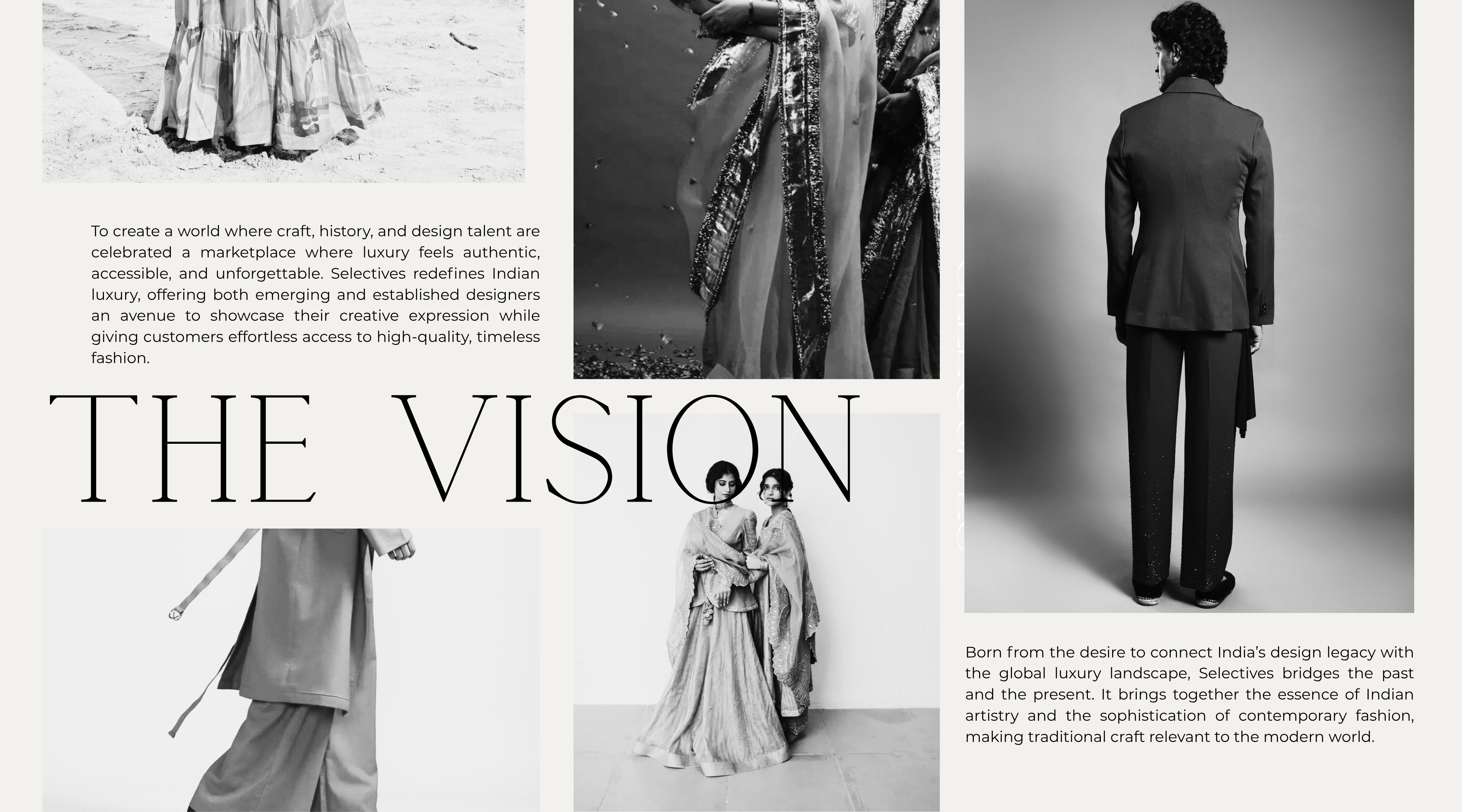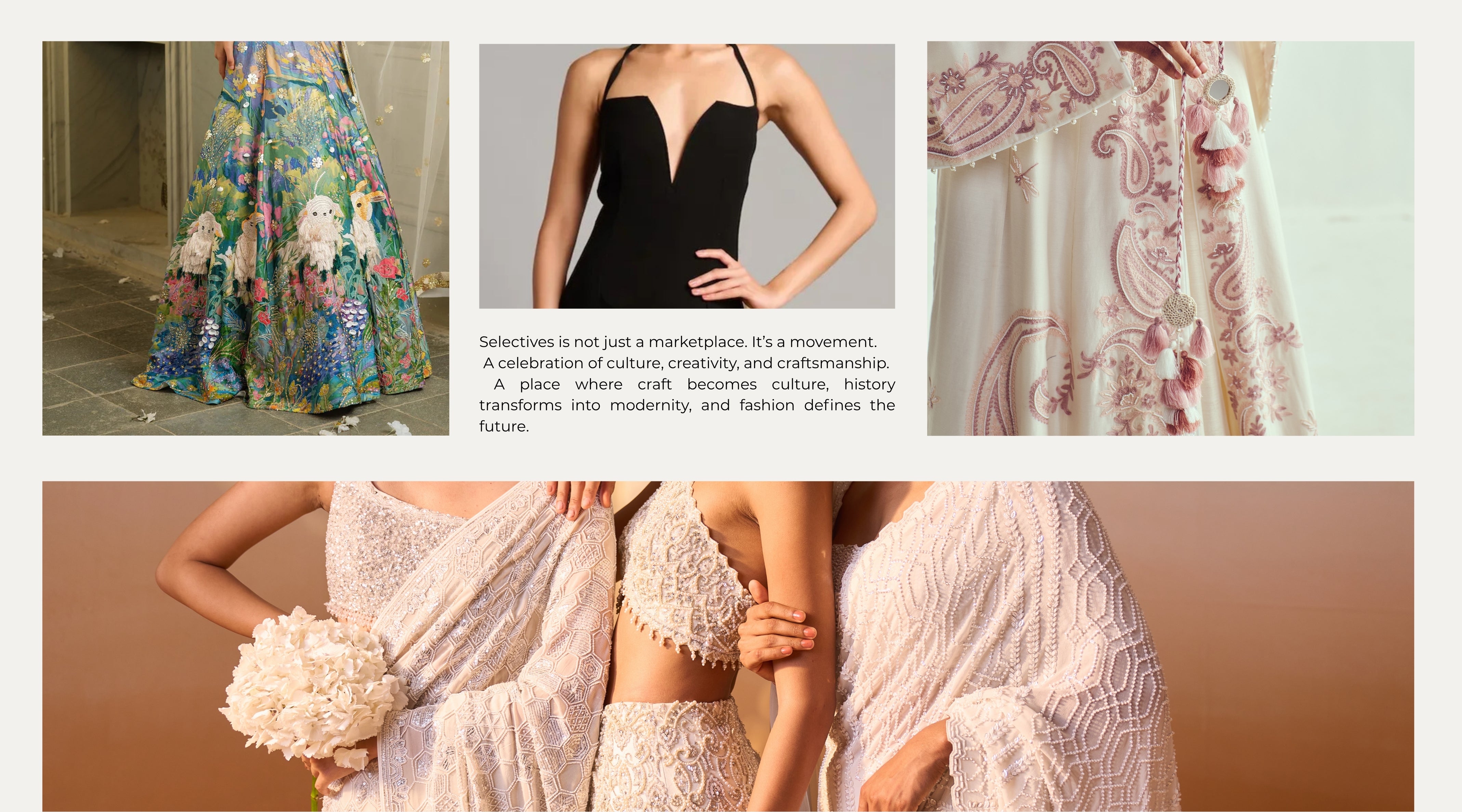 Selectives is a space where India’s rich handicraft heritage meets contemporary design. A world where age-old traditions and modern-day beauty coexist giving customers across the globe a chance to experience the best of Indian luxury fashion in one destination.