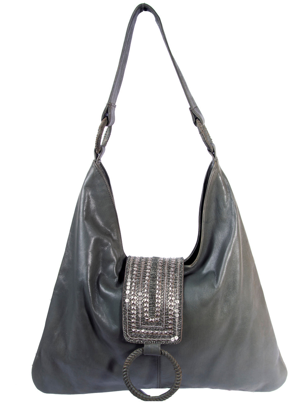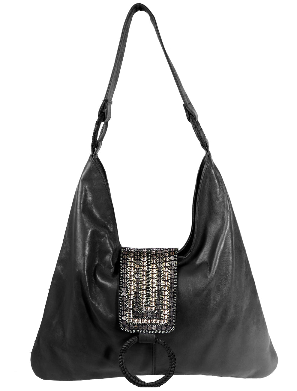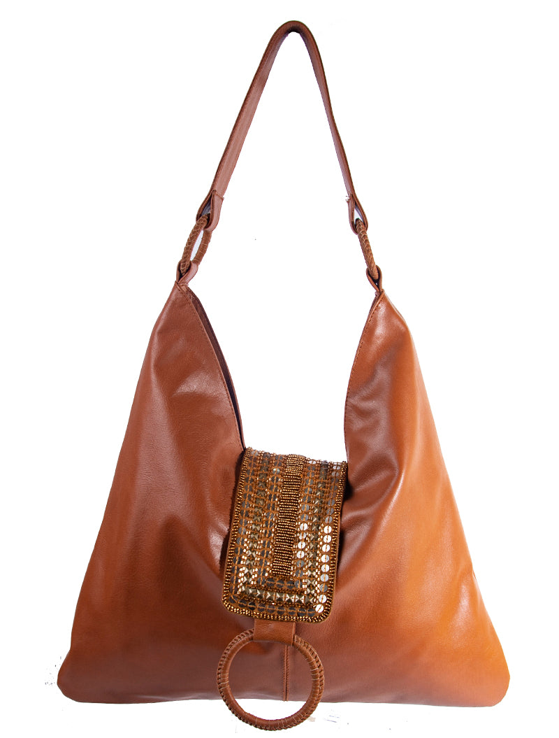 Elevate your style with this Chic Bohemian hobo bag. Made of genuine goat leather, it's perfect for any occasion. Features a wide shoulder strap and beaded flap closure. Stay organized with interior slip and zipper pockets. Don't forget to pair it with our beaded shoes for a charming look!