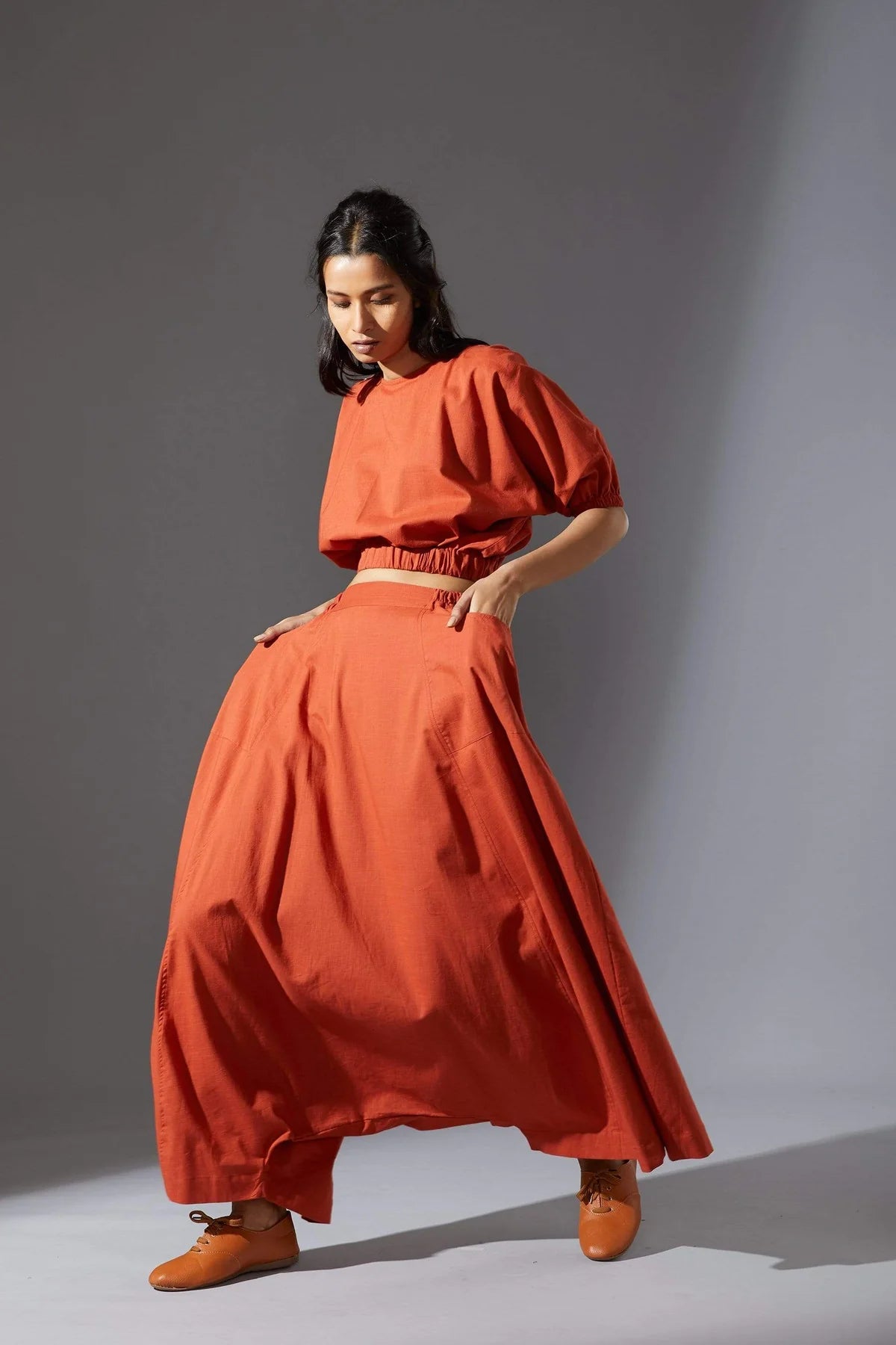Sphara means bubble in sanskrit !! Our cute bubble top made in luxurious handwoven cotton is super comfortable !! Elastic at the sleeve and bottom hem helps you adjust and style the top the way you like. Team it up with our harems to complete the set!! This set come with the top and pants.