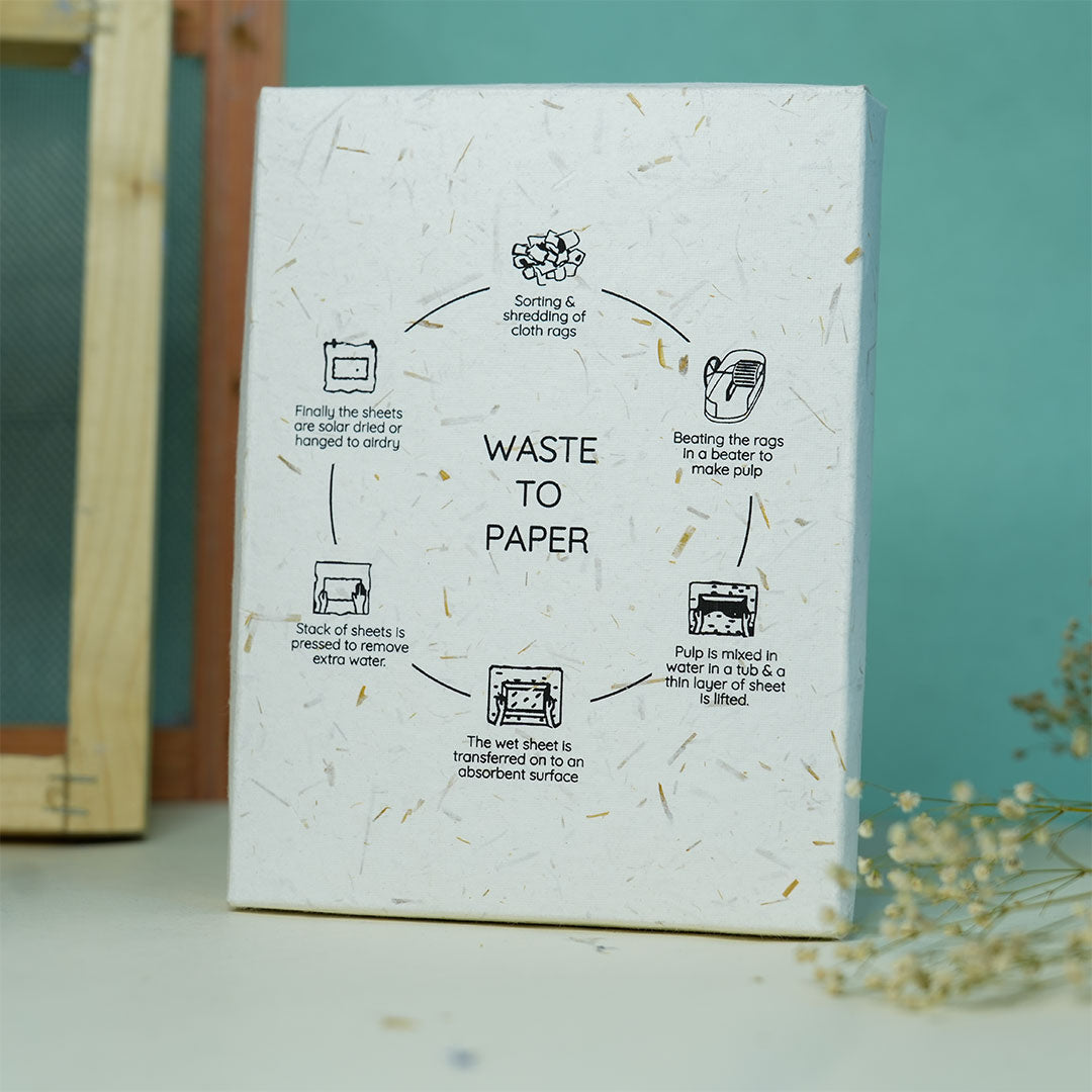 Earth friendly Papers- Cotton paper is often considered a sustainable alternative to traditional wood-based paper. It is made from discarded cotton fibres or textile remnants, reducing the demand for virgin wood pulp. Choosing cotton paper journals promotes sustainable practices and helps minimize deforestation.